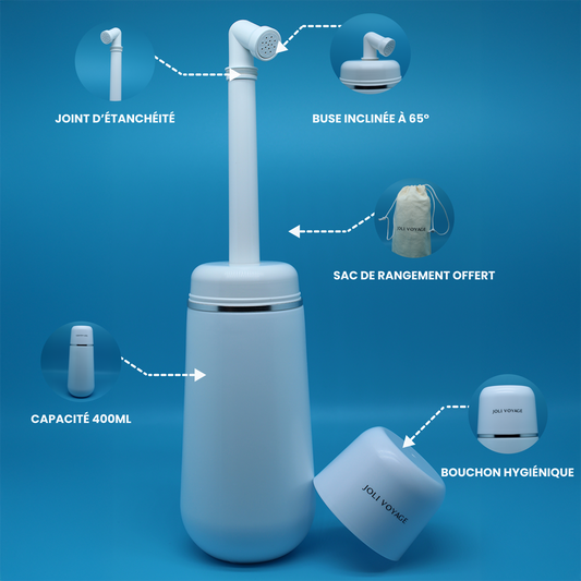L’absence de bidet ou de douchette rend l’hygiène intime souvent insuffisante. Joli Voyage propose une solution efficace et portable pour un nettoyage à l’eau, respectueux du corps et de l'environnement. Une alternative simple pour maintenir une vraie sensation de propreté, à tout moment